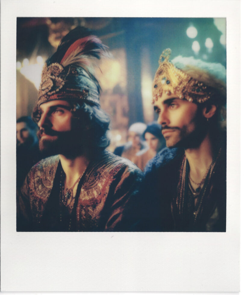 Wie sähe das Osmanische Reich wohl im 21. Jahrhundert aus? Das hat sich der französisch-türkische Künstler Sarp Kerem Yavuz gefragt und mit einer KI imaginäre Porträts queerer Individuen generiert. Nachdem die LGBTQI+-Gemeinschaft in der Türkei vor Kurzem wieder verstärkt ins Visier genommen wurde, erforscht Yavuz in „Polaroids from the Ottoman Empire“ das kontroverse Thema auf einer visuellen Ebene. Die nostalgische Textur und die leichte Unschärfe der Arbeiten schaffen eine Illusion von Authentizität. Gleichzeitig unterstreicht die unzeitgemäße Verwendung von Polaroids, die es im Osmanischen Reich, das 1922 unterging, noch nicht gab, den fiktiven Charakter der dargestellten Szenen. Die Serie ist im Angebot der Palo Gallery in New York. Die Arbeit „Cem & Civan“ (10,6 mal 8,6 Zentimeter) kann für 3450 Dollar (ungerahmt) erworben werden.