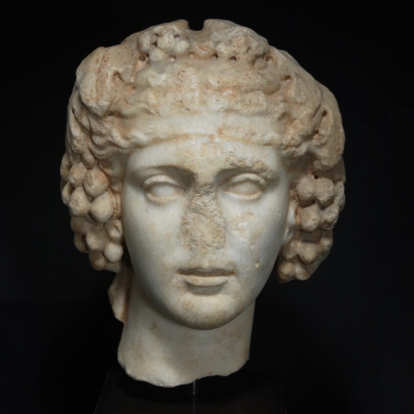 Die Galerie Brenske zeigt eine russische Ikone vom Beginn des 19. Jahrhunderts, die sich in Temperamalerei der theologischen Idee vom Endschicksal des einzelnen Menschen und der Welt widmet. Ein seltenes Thema auf einer Tafel von musealer Qualität (Preis auf Anfrage). Weiter zurück reicht das Angebot der Galerie Blue im Carabinierisaal mit dem Kopf eines indischen Buddhas und einem Musikanten aus der Tang-Dynastie, Chinas goldenem Zeitalter. Und bei Lilly’s Contemporary Art Exclusive Antiques findet sich eine gotische Büste des heiligen Sigismund aus dem Umkreis des Tiroler Bildschnitzers Hans Klocker (um 1500) im spannenden Dialog mit einem abstrakten Selbstporträt von Gottfried Helnwein aus dem Jahr 1986.
