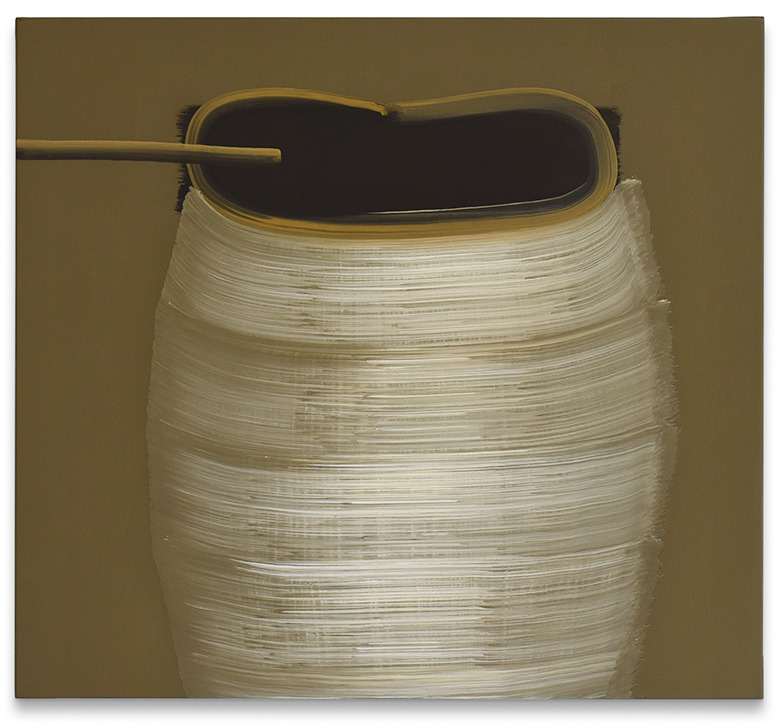 In Itaewon hat man „Mondi Possibili“ als fiktiven Wohnraum angelegt: Ein Zimmer ist mit einer Motivtapete von John Baldessari verkleidet, in einem anderen stehen Lucy Dodds „Holy Basil(ica) Chairs“. Die in Paris ansässige Künstlerin Henni Alftan, von der ebenfalls ein Werk auf der Messe präsentiert wird, hat für Seoul ein neues Gemälde geschaffen: „Armchair II“ zeigt eine Figur in Rückenansicht, tief versunken im titelgebenden Sessel, vor einem rosaroten Abendhimmel, der zu schön wirkt, um wahr zu sein. Vielleicht passt er gerade deswegen so gut nach Seoul – wo man in den letzten Wochen Sonnenuntergänge beobachten konnte, die genauso surreal leuchteten. Das Gemälde zieht einen hinein in die Ausstellung und bildet so zugleich die Brücke ins Außen.