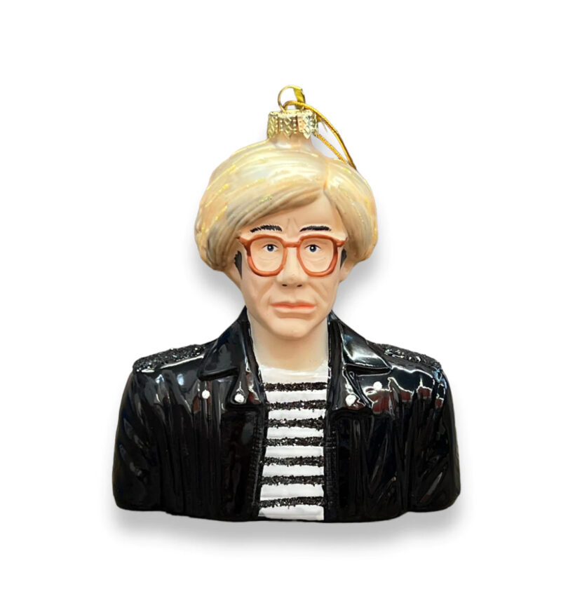 Andy Warhols berühmte „Factory“ in New York war in den Sechzigerjahren ein beliebter Treffpunkt für Kunstschaffende, Intellektuelle und Berühmtheiten, die sich in der avantgardistischen Kunstszene engagierten. Warhol selbst wurde zu einer Kultfigur, die die Verschmelzung von Kunst, Mode und Popkultur auf ein neues Level brachte. Der 1928 geborene Künstler war ein führender Vertreter der Pop-Art-Bewegung, für ihn waren Kunstwerke und Massenproduktion keine Gegensatz. Die Darstellung alltäglicher Konsumgüter und die Verbindung von Kunst und Kommerz faszinierte ihn sein Leben lang. Dass er nun an unserem Weihnachtsbaum baumelt, hätte ihm bestimmt gefallen. Den Weihnachtsschmuck aus Glas haben wir beim Postkartenladen in Köln entdeckt. Er kostet 17 Euro.