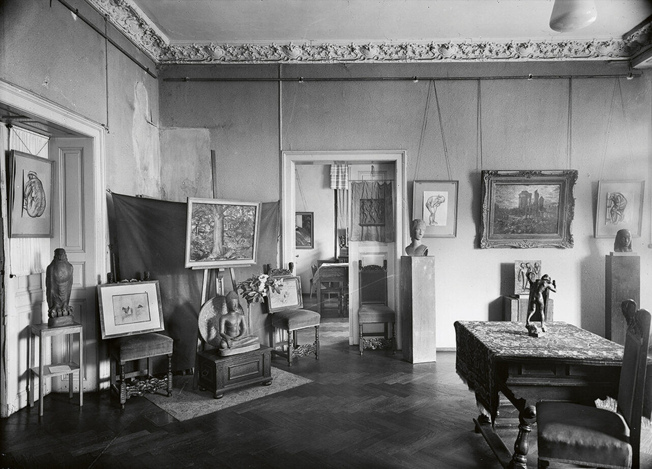 Im ersten Jahr zeigte er Chagall und Beckmann, die Brücke-Künstler und bald auch die abstrakte Kunst von El Lissitzky. Klanghafte Namen wie Man Ray, Kurt Schwitters und Piet Mondrian folgten, dann Hermann Glöckner und Hans Hartung. Zwischendurch präsentierte Kühl immer wieder alte asiatische Kunst, etwa chinesische Bronzen oder japanische Farbholzschnitte. Auf dieses Faible des Galeristen deutet Rudolf Nehmer in seinem Kühn-Porträt mit dem chinesischen Rollbild im Hintergrund hin. Mit Werken von Paula Modersohn-Becker, Käthe Kollwitz und Otto Dix beglückte Kühl in den Zwanzigerjahren zum Beispiel das Sammlerpaar Ida und Friedrich Bienert. Doch mit Hitlers Machtergreifung ging es der Moderne an den Kragen. Das Programm der Galerie, die nun in die Kleine Brüdergasse zog, büßte ihre Internationalität ein. Doch auch zur Nazizeit konnte man hier „entartete Kunst“, etwa von Dix, Karl Hofer oder Paul Klee, erwerben, Heinrichs Sohn Johannes Kühl erinnerte sich später, dass es für „spezielle Kunden“ einen eigenen kleinen Büroraum gegeben habe.