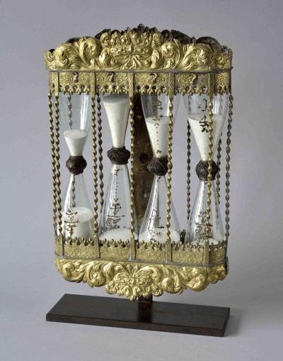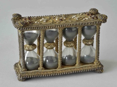 Die einst allgegenwärtigen Sanduhren in den unterschiedlichsten Materialien und Ausführungen stellen heute begehrte Sammelobjekte dar. Die Pariser Galerie Delalande widmet ihnen eine Sonderausstellung mit Katalog (jeweils in französischer, italienischer und englischer Sprache). Neben relativ einfachen Stundengläsern in Buchsbaumgestellen betört eine Auswahl überaus aufwendiger Instrumente aus dem 17. und 18. Jahrhundert in kostbaren, reich verzierten Gehäusen aus Elfenbein, Silber oder vergoldetem Messing.