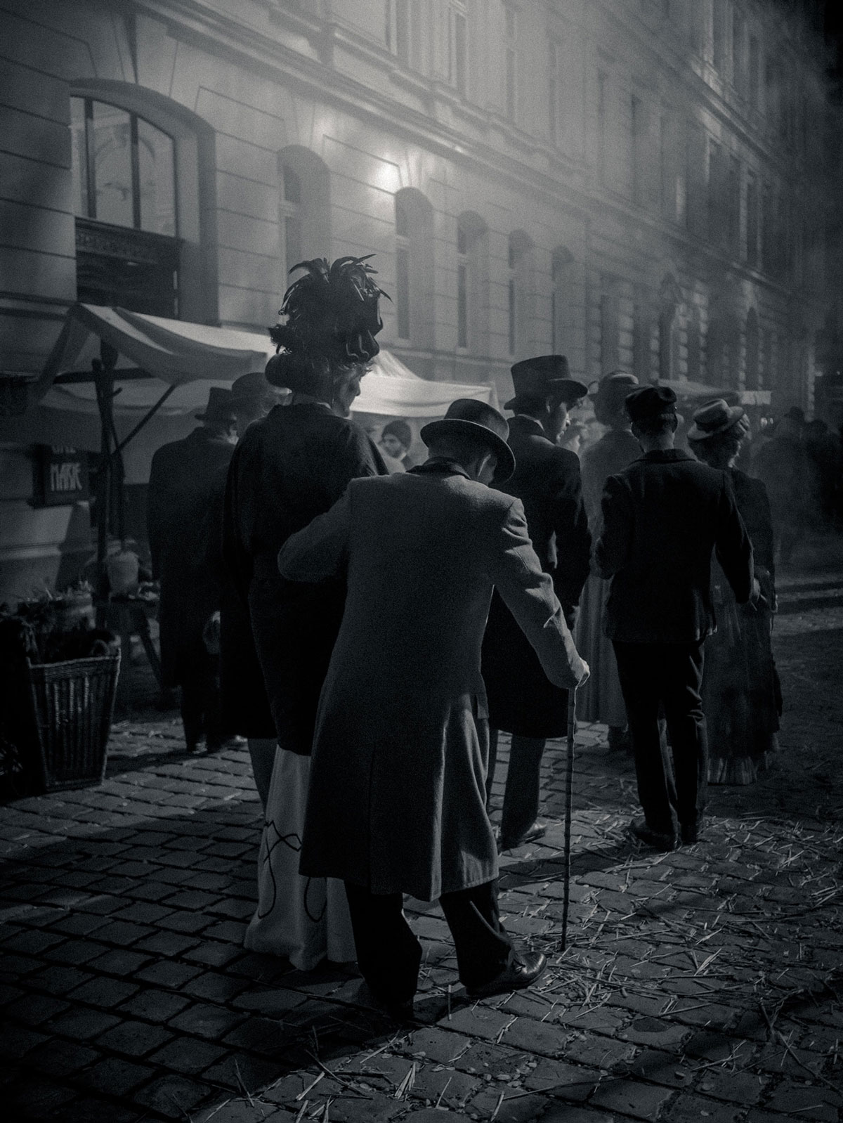 „Die Kunst ist es,“ verrät Hart, „nie direkt während des Drehs zu agieren, sondern an der Peripherie zwischen dem Ende und dem Anfang der Szene zu fotografieren. Da fühlen sich Protagonisten wie Komparsen ganz unbeobachtet, aber sie sind nicht minder konzentriert und es besteht die Möglichkeit für schnappschussartige Bilder, die ungewöhnlich sind.“ Etwa das Bild, in dem Paula und ihre Freundin Clara Westhoff am Fenster sitzen. Der düstere enge Raum, das Licht, das von draußen durch das hohe Sprossenfenster hineinfällt, die Nähe der beiden Frauen zueinander, ihre konzentrierten Gesichter, machen den Betrachter zum Zeugen einer intimen Szene. Man würde zu gern wissen, worüber sich die jungen Frauen unterhalten. Planen Sie ein Abenteuer, einen Ausbruch ins Leben hinter dem Fenster? Aufnahmen wie diese sind der eigentliche Auslöser für das Kino im Kopf.