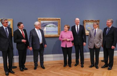 In Anwesenheit herausragender Persönlichkeiten wurde in Potsdam das Museum Barberini eröffnet. Unter den Gästen des Stifters Hasso Plattner (im Bild links neben der „Brücke bei Argenteuil“ von Caillebotte) waren Angela Merkel, Brandenburgs Ministerpräsident Dietmar Woidke und Bill Gates. Das „neue“ Palais Barberini ersetzt das friderizianische Originalgebäude, das im Zweiten Weltkrieg zerstört wurde. Rund 60 Millionen Euro hat Hasso Plattner in den Bau investiert, der das Ensemble rund um das ebenfalls wiederererichtete Stadtschloss ergänzt. Die größeren Schätze finden sich indessen mit den Werken aus der Sammlung von Hasso Plattner im Inneren des Gebäudes, der jetzt auch Ehrenbürger der Stadt Potsdam ist. Kanzlerin Angela Merkel, die das neue Museum der Amtseinführung des neuen Präsidenten Trump vorzog, kommentierte die Ehrung Plattners mit der Bemerkung: „Wurde auch Zeit“. Angesichts der Werte, die in der Sammlung liegen, relativieren sich aber selbst die Kosten für das Palais. Schon für die beiden Werke „Brücke bei Argenteuil“ von Gustave Caillebotte, ersteigert für rund 13 Millionen Euro, und den „Mädchen auf der Brücke“ von Edvard Munch, das 50 Millionen Euro erzielte, musste tiefer in die Tasche gegriffen werden. Das erste ist in der Ausstellung „Impressionismus. Die Kunst der Landschaft“, das zweite in „Klassiker der Moderne. Liebermann, Munch, Nolde, Kandinsky“ zu sehen. In beiden Ausstellungen wurde Plattners Besitz durch Leihgaben von internationalen Museen und Privatsammlern ergänzt. Die dritte Schau zur Museumseröffnung gibt einen Vorgeschmack auf die DDR-Kunst-Sammlung der Hasso Plattner Stiftung – ein Lieblingsthema des Mäzens.