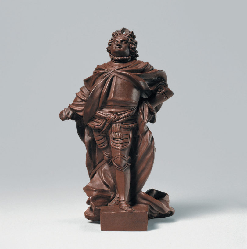 Das Bildnis Kurfürst Johann Georgs IV., des Bruders von August dem Starken, der nur von 1691 bis 1694 regierte, wurde vor 1711 nach einem Elfenbeinrelief Balthasar Permosers kopiert. Permoser kam 1689 aus Florenz als Hofbildhauer nach Dresden. Sein Monogramm hat sich auf dem Steinzeug-Brustbild mit prächtiger Allongeperücke erhalten. Es gibt auch einige sehr freie Wiederholungen des Dresdener Hofbildhauers Paul Heermann nach römischen Plastiken von Bernini, darunter einen Apollokopf. Eines der frühesten eigenständigen plastischen Werke um 1714 stellt König August II. als römischen Imperator (im „Römischen Habit“) in Porzellan und Steinzeug dar.