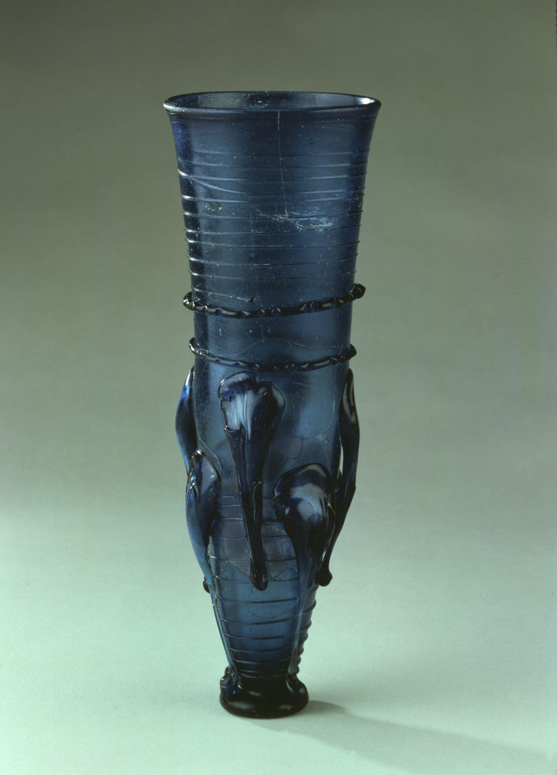 Werfen wir in unseren Breiten einen Blick zurück: An Rhein und Mosel wurde schon zu Zeiten der Römer Wein angebaut. Und in Trier, Worms oder Köln sind für das erste nachchristliche Jahrhundert eigene Glasproduktionen nachgewiesen. Dort entstanden Becher, Flaschen und Kannen in Form von Hörnern, Trauben, Muscheln, Fischen, Affen- oder besonders markanten Menschenköpfen mit afrikanischen Zügen, einer Hakennase oder Warzen. Dank der damals erfundenen Glasmacherpfeife war die zähflüssige Glasmasse nach Belieben dünnwandig formbar. Zu den technisch anspruchsvollsten Scherzgläsern gehören die Rüsselbecher. In Fortführung spätrömischer Tradition waren sie bei Glasmachern der Merowinger um 500 besonders beliebt.