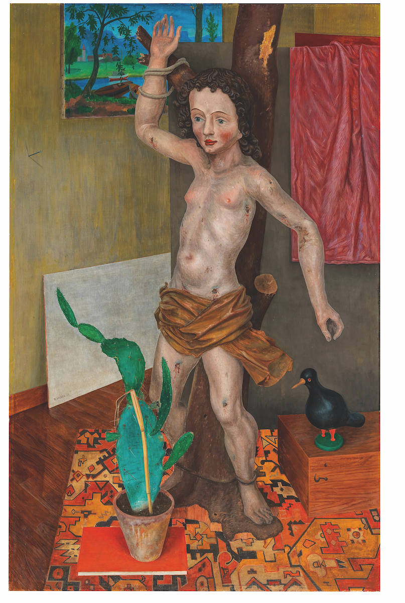 Die Neue Sachlichkeit war keine deutsche Erfindung. Impulse kamen früh aus Italien. Schon 1910 malten Giorgio de Chirico und kurz darauf der Futurist Carlo Carrà bühnenbildhafte Architekturszenerien in unwirklichen Farben und fragwürdiger Lichtregie. „Pittura metafisica“ nannten sie ihre Methode. Die Philosophie beschreibt Metaphysik als Wahrnehmung der hinter den Dingen liegenden Seins-Fragen. Ein weites Feld, das auch die Schweizer Maler Niklaus Stoecklin, Eduard Gubler und Theodor Barth, die Brüder François und Aimé Victor Barraud oder der Eigenbrötler Adolf Dietrich allesamt mit einer Melange aus Rückbesinnung auf Florentiner Renaissance, Avantgarde und Heimatmalerei erkundeten. Auch in Österreich zeigte sich die Neue Sachlichkeit weniger als Chronik der turbulenten Zwanziger. Die Flucht in die realen Dinge verkehrte sich in eine Flucht ins Geheimnisvoll-Fantastische. Der einstige Expressionist Rudolf Wacker entdeckte 1925 seine „Liebe zu den Dingen“. Ähnlich wie Lenk offenbart er in verzerrten und in „übersteuerte“ Farben getauchte Stadtansichten die Brüchigkeit der Welt. In leeren, irrealen Stillleben kombinierte er Puppen, Masken und Vögel und rückte damit in die Nähe des Surrealismus. Mit 300.000 Euro realisierte schon 2017 Hassfurther einen Topzuschlag für die Landschaft „Taubenschlag Goslar“. Gerade erst erzielte das Dorotheum die gleiche Summe für das abgründige „Stillleben mit St. Sebastian“. Franz Sedlaceks Thema war die dämonische Übersteigerung der Realität. Vor schwarzem Hintergrund werden Blüten und Blätter in seinen Blumenstillleben zu unheilversprechenden, bizarren Wesen. Nur selten noch sind seine faszinierenden Gemälde unter der 100.000-Euro-Marke zu haben.