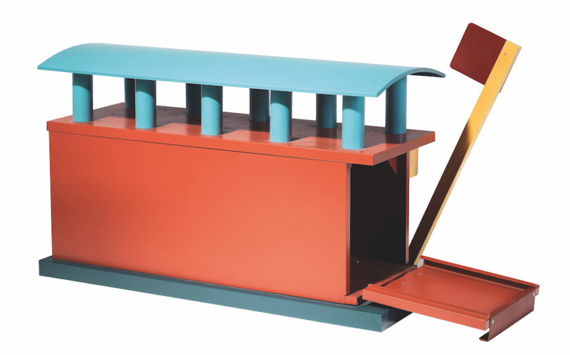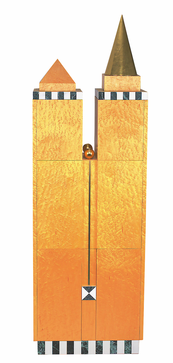 Es gibt nicht gerade viele berühmte Achtzigerjahre-Design-Sammlungen, aber die Persönlichkeiten sprechen für sich. Karl Lagerfeld verkaufte seine Kollektion 1991 bei Sotheby’s in Monte Carlo. David Bowie trug rund hundert große Möbel und Objekte zusammen. Er besaß Peter Shires „Big Sur“-Sofa, George Sowdens Schrank „Antibes“ sowie dessen große Standuhr „Metropol“, Lampen von Ettore Sottsass, Schalen von Matteo Thun und Nathalie Du Pasquier und vieles mehr. Und weil er diese Objekte liebte, lebte er mit ihnen und trennte sich nicht davon. Erst nach seinem Tod wurde Bowies Kollektion versteigert, und natürlich erzielte alles absolute Höchstpreise.