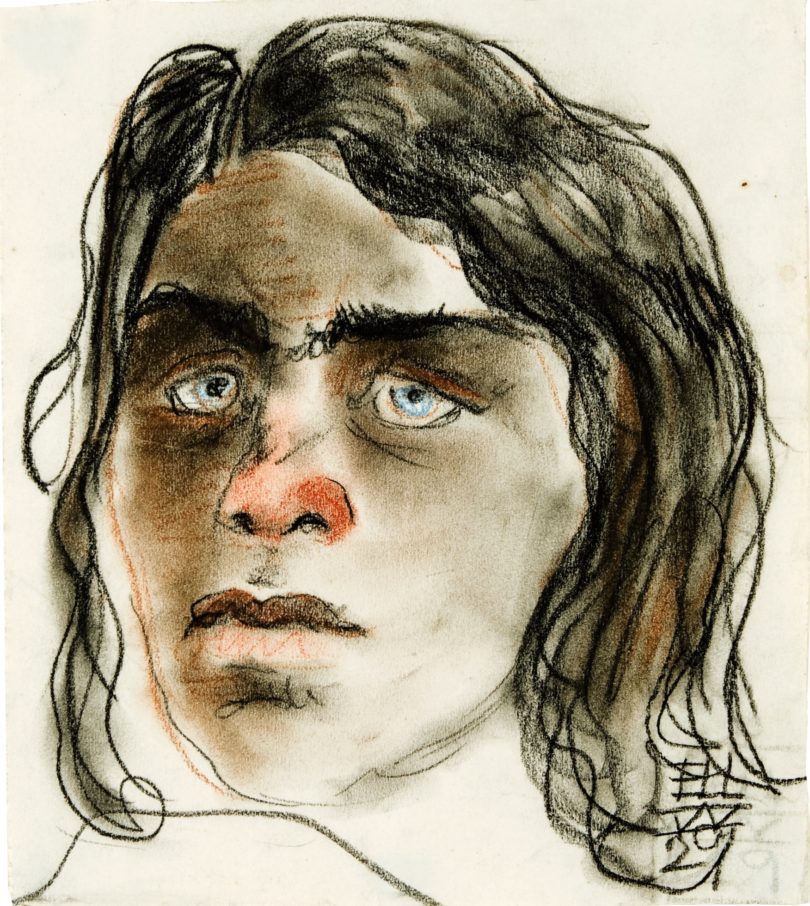 Zu den bedeutenden Künstlerinnen, deren Wiederentdeckung trotz einiger Publikationen zu Leben und Werk noch aussteht, zählt die gebürtige Dresdnerin Elfriede Lohse-Wächtler (1899–1940). Ihr gutbürgerliches Elternhaus verließ sie bereits mit 16 Jahren; im Jahr 1915 schrieb sie sich an der Dresdner Königlichen Kunstgewerbeschule für das Fach Mode ein. Kunstgewerbliche Arbeiten sicherten ihren Lebensunterhalt, aber sie war auch als freie Künstlerin tätig. Die eigenwillige und unkonventionelle junge Frau befreundete sich mit Otto Dix, Otto Griebel und Conrad Felixmüller, die damals ebenfalls noch im konservativ-bürgerlichen Dresden lebten. In diesem Umfeld lernte sie ihren späteren Ehemann, den Sänger und Maler Kurt Lohse kennen – einen „arbeitsscheuen Jammermenschen“, wie ihr Vater ihn nannte. Mit ihm ging sie 1925 nach Hamburg; ein Jahr später trennte sich das Paar. Für Elfriede Lohse-Wächtler folgten einsame, schwierige und entbehrungsreiche Jahre, in denen sie jedoch künstlerisch höchst produktiv war. Nach einem psychischen Zusammenbruch wurde sie 1929 in die Hamburger Staatskrankenanstalt Friedrichsberg eingeliefert; hier entstand mit den „Friedrichsberger Köpfen“ einer ihrer bedeutendsten Werkzyklen. Rund 60 Blätter zeigen vor allem Bildnisse von Lohse-Wächtlers Mitpatientinnen in der psychiatrischen Klinik. Mit ihren zeichnerischen Mitteln gelang es ihr, deren desolate seelische Verfassung anschaulich zu machen. Ein unruhiges Liniengeflecht bezeichnet Haare und faltige Haut. Der Blick ist meist angstvoll starrend, weist in eine eigene Welt voller Hoffnungslosigkeit, Düsterkeit und Verzweiflung.