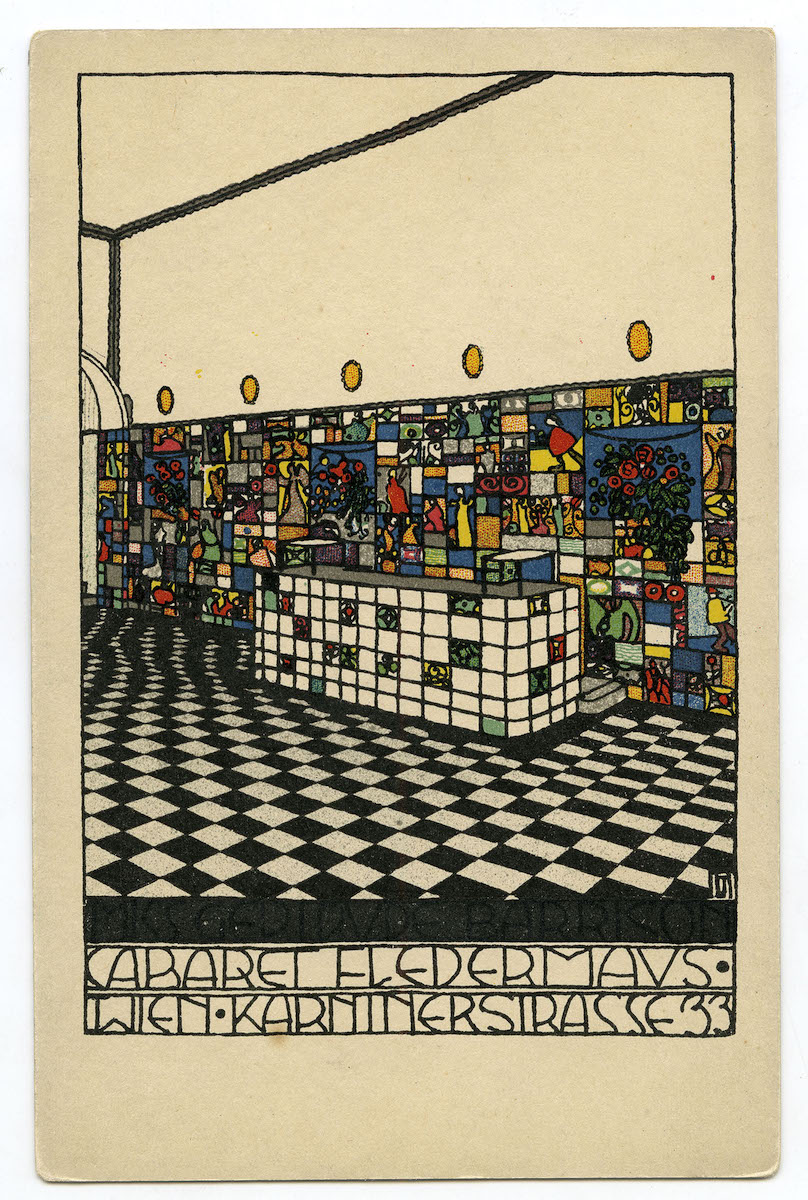 Hoffmann stammte aus einer wohlhabenden Familie – im Geburtshaus in Brtnice sind heute jährlich wechselnde Ausstellungen zu sehen. An der Wiener Akademie der bildenden Künste studierte er Architektur, zuerst beim Ringstraßenarchitekten Carl von Hasenauer, später beim weitaus moderneren Otto Wagner. Gemeinsam mit Koloman Moser und dem Industriellen Fritz Waerndorfer gründete er 1903 die Wiener Werkstätte. Das Unternehmen, bestehend aus spezialisierten Handwerksbetrieben, entstand – auch – aus einer Unzufriedenheit heraus. In seiner „Selbstbiografie“ schreibt Hoffmann: „Der Versuch, unsere Ideen von den bestehenden Firmen verwirklichen zu lassen, musste am Mangel an mitfühlenden Arbeitskräften scheitern. Die handwerkliche Arbeit hat den fabriksmäßigen Betrieben Platz machen müssen.“ Noch heute bestechen die Objekte der Wiener Werkstätte – egal, ob es sich um Hoffmanns Kettenanhänger handelt, um Vasen, um minuziös gearbeitete Gläser oder um ein Porzellangeschirr, das überzogen ist von spielerischen Dekorationen. Zu einem der Höhepunkte zählt das Cabaret Fledermaus in Wien, entstanden unter Hoffmanns Federführung: Ein Schachbrettboden trägt Sitzgruppen mit den bekannten „Fledermaus-Stühlen“, die Kacheln wurden von Kollegen und Kolleginnen der Wiener Werkstätte entworfen – der reinste Farbenrausch. Kurator und Hoffmann-Experte Witt-Dörring schreibt im Katalog: „Es ist ein Kampf gegen den schlechten Geschmack und minderwertige Ausführung, gegen die Vorherrschaft der maschinellen Produktion und das Diktat des Handels bezüglich der verfügbaren Produktpalette.“