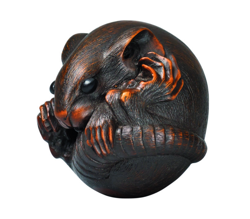 Zuerst aber kommt China ins Spiel, womöglich begannen auch die mongolischen Reiter damit. Denn um all die kleinen Dinge zur Hand zu haben, die man unterwegs brauchte – das Siegel, einen Münzbeutel, etwas Tabak oder ein anderes Kraut, das beflügelt, vielleicht auch Schreibzeug – steckte man sie, weil die Kleider keine Taschen kannten, in den Gürtel. Oder man hängte sie daran. Die Schnur war gegen das Durchrutschen mit einem Stück Wurzelholz oder Bambus, manchmal auch einem kleinen Flaschenkürbis gesichert. Darauf deutet der Name hin, der sich aus ne (Wurzel) und tsuke (anhängen) zusammensetzt. Und wie so oft, wenn die Japaner von den Chinesen (oder Koreanern) Nützlichkeiten übernahmen, wurden aus diesen Fundstücken bald Kunststücke. Kleine, meist nur drei bis sechs Zentimeter hohe, dabei höchst erfindungsreiche und vielfältige Schnitzkunstwerke.