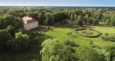 Ein Gesamtkunstwerk nach dem Ideal des englischen Landschaftsgartens aus dem 18. Jahrhundert. Mit sanften Erhebungen, blühenden Ebenen, die Wolken spiegelnden Teichen und einem malerisch eingesetzten Graben – Ha-Ha genannt. Die Grenze des weitläufigen Areals markiert die Erft. Müller selbst ließ den Nebenarm des Rheins weder tiefer legen noch begradigen; das haben andere vor ihm getan, als sie die Flächen für die Landwirtschaft nutzbar machten. Jetzt ist dies ein Landschaftsschutzgebiet, in dem robuste Rinder weiden: Sie halten das Grün so niedrig, dass man ohne Hindernis immer weiter schauen kann, bis Bäume der Idylle ein Ende setzen. Eine vorgetäuschte Unendlichkeit, die einen die nahen Gewerbegebiete und Neubausiedlungen vergessen lässt.