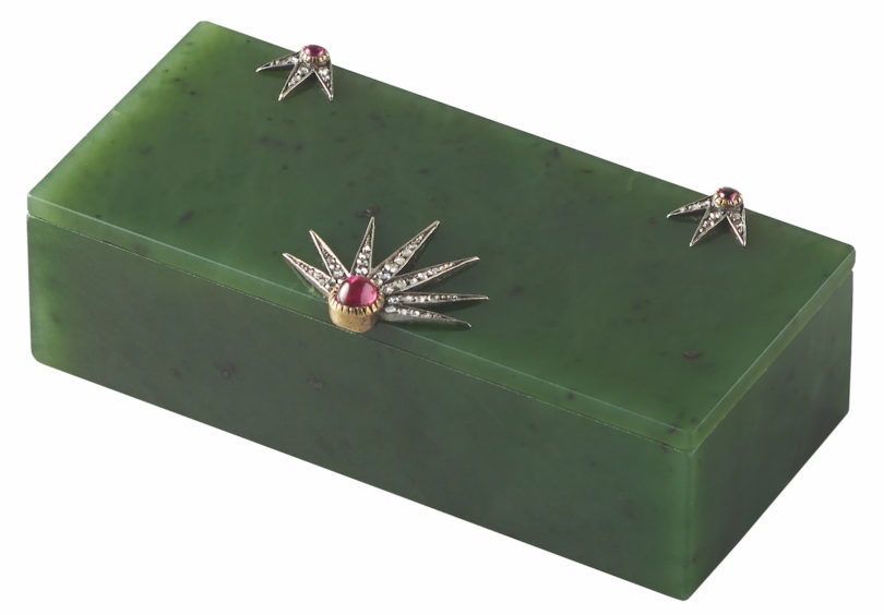 „Fabergé-Objekte waren etwas zum Verschenken. Nikolaus II. hatte das als Erster verstanden“, sagt der deutsche Fabergé-Experte Alexander von Solodkoff, einer der renommiertesten Autoren zum Thema, dessen Kennerschaft auch als Jurymitglied der Tefaf gefragt ist. „Bei jedem offiziellen Besuch überreichte er Golddosen, die mit seinem Porträt oder den kaiserlichen Initialen verziert waren.“ Auch Zarin Alexandra, geborene Prinzessin Alix von Hessen, oft von Sehnsucht nach ihrer deutschen Heimat geplagt, bestellte Schmuckstücke und erlesene Petitessen, die ihre weitverzweigte Verwandtschaft als Zeichen der Zuneigung und der gemeinsamen Identität gern entgegennahm.