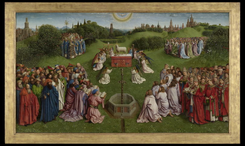 1432 vollendete Jan van Eyck sein Meisterwerk und der Altar fand seinen Platz in der Kathedrale von Gent. Ursprünglich ging der Auftrag für die Altargemälde an Hubert van Eyck, der aber verstarb vor dessen Vollendung und der jüngere Bruder Jan übernahm die monumentale Aufgabe.