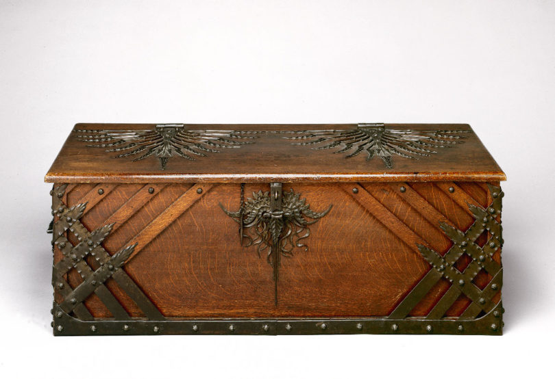 Der Jugendstil, einst ebenfalls eine reich bestückte Abteilung des Stadtmuseums, ist nur mit einigen wenigen Möbeln vertreten. Wie weit der Bogen stilistisch gespannt ist, zeigen zwei sehr konträre Beispiele. Da ist die gotisch inspirierte Eichentruhe mit Eisenbeschlägen, die Hermann Obrist 1897 auf der legendären Glaspalast-Ausstellung präsentierte – die Schau gilt als Wiege des Münchner Jugendstils. Legendär ist der Armstuhl, den Richard Riemerschmid im Jahr 1900 für einen Wettbewerb kreierte, der Möbel für einkommensschwache Käufer zum Thema hatte. Aus Kanthölzern, Brett und ausgesägten Halbkreisen, den Materialien Buchenholz und Eisenbeize entstand ein Sitzmöbel von zeitloser Modernität. Riemerschmid erhielt dafür den ersten Preis.