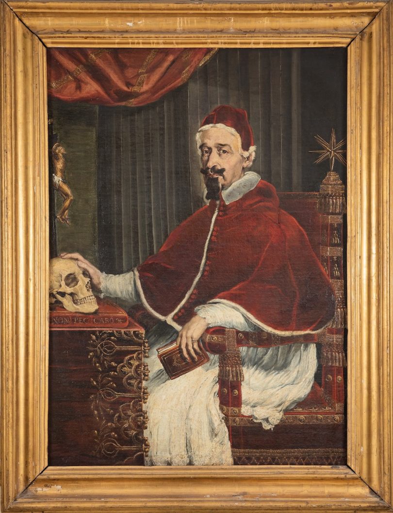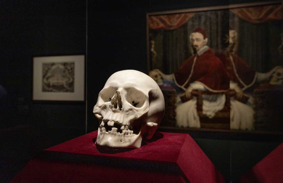 Die Freundschaft von Alexander VII. Chigi und dem ungefähr gleichaltrigen Bildhauer, Maler und Architekten Gian Lorenzo Bernini ist ein bekanntes Kapitel Kunstgeschichte – man denke nur an das barocke Programm von St. Peter und Berninis Kolonnaden auf dem Petersplatz, die Gläubige aus aller Welt mit offenen Armen willkommen heißen. Gleich nach seiner Wahl zum Papst im Jahr 1655 beauftragte Alexander VII. seinen Freund mit einem Totenschädel, ein Meditationsobjekt, „um ihn an die Fragilität der menschlichen Existenz zu erinnern.“ Guido Ubaldo Abbatinis Gemälde des Papstes mit dem Totenkopf von 1655/1656 ist jetzt auch Teil der Ausstellung. Es war die Zeit der Pest, und Alexander VII. ließ sogar, um auch nachts den Tod nicht zu vergessen, einen bleiernen Sarkophag unter sein Bett stellen.