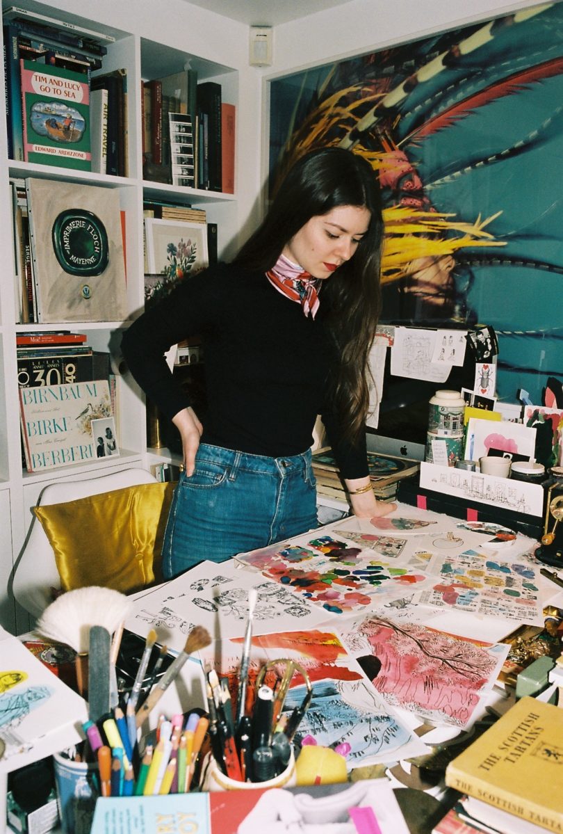 Am wichtigsten sei für sie allerdings, dass Serge Poliakoffs Gemälde auf sie wie seine Avatare wirken: „Wenn irgendwo ein Bild von ihm hängt, dann ist es, als sei ein Familienangehöriger anwesend. Ich fühle mich sofort zu Hause.“ Der Gedanke, dieses Erbe, dieser berühmte Name könne sie als junge Künstlerin einengen oder hemmen, scheint ihr vollkommen abwegig: „Ich habe das nie als Last empfunden, ganz im Gegenteil: Alles, was ich tue, nährt sich aus meiner Geschichte und meinen Wurzeln“, sagt sie und erklärt damit auch das Triptychon, das sie für ihre Abschlussarbeit entworfen hat: Auf dem rechten Bild sieht man eine Frau in einem blutroten Kleid auf einem gelben Pferd sitzen, auf dem linken hockt ein Reiter im schottischen Gewand auf einem rosafarbenen Ross, in der Mitte eine abstrakte Komposition: „Das Stück in der Mitte ist ein Selbstporträt, meine Eingeweide, der Tartan verweist auf die schottischen Wurzeln meiner Urgroßmutter, die Pferde spielen auf die russische Herkunft meines Urgroßvaters und seine Familiengeschichte an.“ Gerade träumt die junge Frau, die im obersten Stock des Hauses lebt und malt, in dem auch ihre Mutter, ihre Großmutter und ihr Großvater wohnen, von ihrer ersten eigenen Ausstellung. Bis dahin kann man ihre Arbeit an verschiedenen Ecken von Paris entdecken, etwa im Restaurant Mon Square, für das sie Wandfresken gemalt hat, auf Buchcovern, auf Tüchern und Kartenspielen für das Haus Casa Lopez. Zuletzt hat sie den Besucher-Guide für das neue Museum in Fontevraud illustriert. „Sacha ist die Zukunft“, sagt ihre Großmutter, ihre Mutter strahlt, sie wirkt glücklich und stolz.