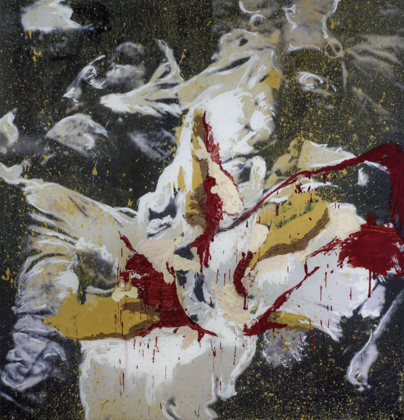 Unterbewusst, auf jeden Fall. Vor ungefähr einem halben Jahr habe ich mit einer Serie von Kriegsbildern begonnen. Als Ausgangspunkt habe ich Fotografien aus dem Zweiten Weltkrieg genommen, und Holocaust-Bilder, die ich am Computer so bearbeitet und überbelichtet habe, dass die Mitte unkenntlich wurde. Darüber habe ich gemalt. Es ist eine komische Vorstellung für mich, dass ich diese Bilder gemalt habe, und jetzt hat sich die Geschichte so entwickelt. Für mich hat diese Malerei die Botschaft: Wie findet man Hoffnung an Orten, die hoffnungslos sind? Das ist schon länger ein Thema für mich.