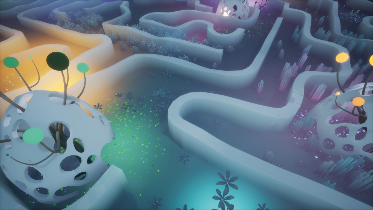 Spiele. Gestern haben wir ein Game veröffentlicht. Es trägt den Titel „Hivemind“ und ist eine Arbeit von Calum Bowden, Will Freudenheim und Joanna Pope vom Künstlerkollektiv Trust. Man läuft durch ein nie endendes Labyrinth, die Idee ist, eine Reise durch den Kopf einer kunstschaffenden Person zu machen.