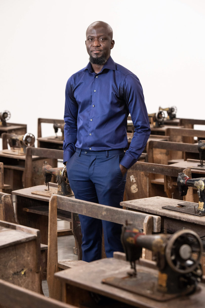 Vor fünfunddreißig Jahren kam hier einer der heutigen Künstlerstars seiner Generation zur Welt: Ibrahim Mahama. Wie viele ghanaische Künstlerinnen, Künstler und Intellektuelle seit der Unabhängigkeit des Landes studierte er als junger Mann an der KNUST in Kumasi, der Kwame Nkrumah University of Science and Technology, einem hoch entwickelten Inkubator für künstlerische Talente im Herzen der legendären Ashanti-Region. An der KNUST wird Kunst seit zwanzig Jahren als eine Form politischer Guerilla verstanden und unterrichtet, eine kraftvolle Mischung aus philosophischer Bildung, dekolonialisiertem Denken und gesellschaftlichem Bewusstsein, verbunden mit dem kritischen Hinterfragen von Materialien, Architekturen und Ausstellungsformen. Mahamas internationaler Durchbruch kam 2015 mit Okwui Enwezors Einladung zur 56. Biennale in Venedig. Er installierte im Arsenal „Out of Bounds“, eine Haut aus zusammengenähten alten Transportsäcken an den hohen Wänden eines schmalen Ganges. Darauf folgte 2017 eine Einladung nach Kassel zur Documenta 14 und die Verhüllung der beiden Gebäudeteile von Heinrich Christoph Jussows Torwache mit Jutesäcken. Wie erfolgreich sich Ibrahim Mahama in der Kunstwelt des globalen Nordens etabliert hat, zeigt auch die Tatsache, dass er von der Galerie White Cube in London vertreten wird.