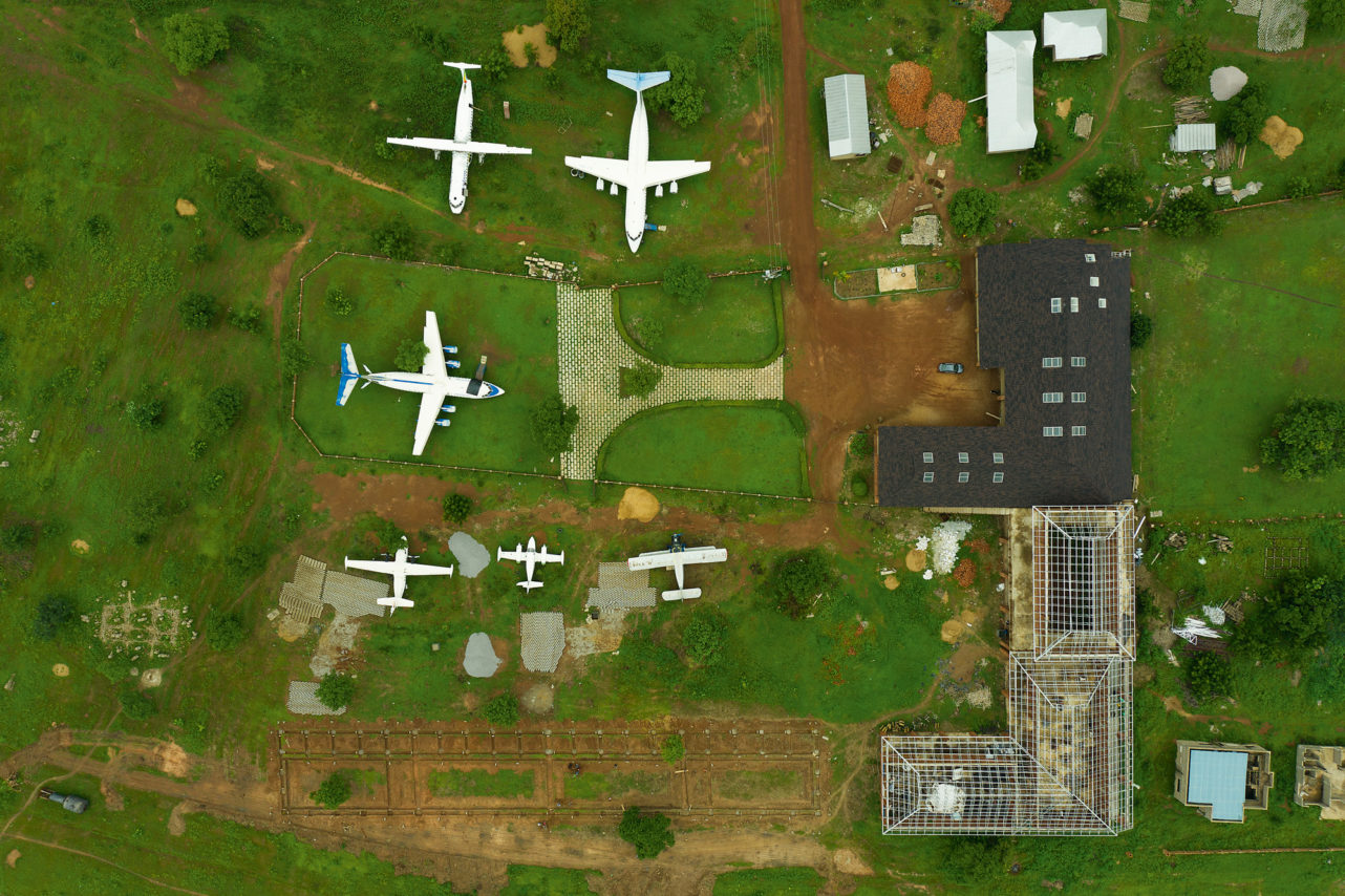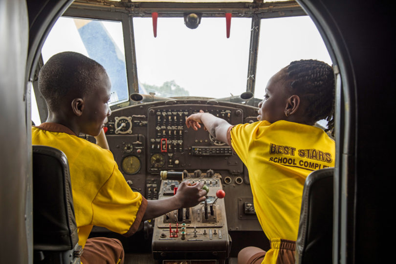 Auf dem afrikanischen Kontinent ist Mahama im Begriff, die Idee des Museums radikal neu zu denken. Er kaufte Land und ließ darauf Hallen errichten, die allen zugänglich sein sollen. „Hier sind Kunstwerke zu sehen. Das Gebäude drumherum ist ein Kunstwerk, und das Gespräch, das wir in diesem Gebäude führen, ist auch Teil des Kunstwerkes. Seid euch darüber im Klaren, und konzentriert euch!“ Sanft, aber bestimmt spricht Mashud Abdul Hamid, ein Mitarbeiter Mahamas, zu einer kleinen Bande zerstreuter Jugendlicher im Garten des Red Clay Studio. Sie sind gekommen, weil man von der Straße etwas nördlich von Tamale sechs große weiße Flugzeuge mitten in der flachen Landschaft sehen kann, ausgediente Privatjets und kleine Linienmaschinen, die Mahama mit viel Aufwand hat hierherbringen und in Klassenräume umwandeln ließ. Eine 25 Jahre alte British Aerospace 146-300, die unter anderem für KLM, Air France, Eurowings und zuletzt die ghanaische Fluglinie Starbow im Einsatz war, steht dort; auch eine kleine Antonov AN-2 aus Sowjetzeiten, später in Litauen umgerüstet und im Allgäuer Airport Memmingen gemeldet. Es geht eine große Faszination von diesen global gestrandeten Albatrossen auf der roten Erde im Garten von Red Clay aus. Für die meisten aus der Gegend ist es die erste Begegnung mit Flugzeugen überhaupt. Die Teenager steigen kichernd in die Starbow. Sie machen Selfies drinnen, darauf, darunter, davor, klopfen coole Sprüche und hören Mashud Abdul Hamid kaum zu. Es dauert eine Weile, bis er sie für den Genius Loci begeistern kann, doch irgendwann gelingt es.