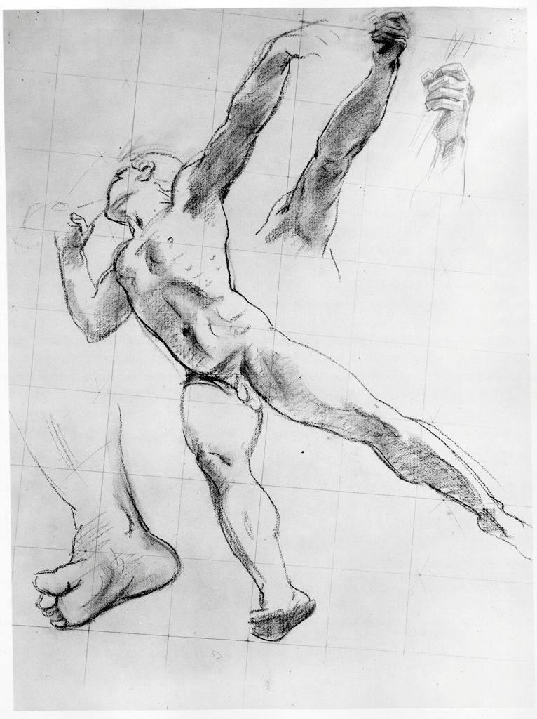 Was uns bleibt, sind seine Bilder und ihre Geister. Und vielleicht kommt man Sargents Geheimnis nur mit ihrer Hilfe auf die Spur. Drei Monate, nachdem ich mich in der National Portrait Gallery in Dr. Pozzi schockverliebte, hielt ich mich in Boston auf und ging alle Stationen ab, die man abgehen muss, wenn man Sargent verehrt. Der Maler hatte sich hier kurz vor dem Ersten Weltkrieg niedergelassen und sollte bis zum Ende seines Lebens viel Zeit in der Stadt verbringen. Ich ging in die Public Library, um mir seine bekannten Wandgemälde anzuschauen, ein Prachtbau, typisch für Amerikas Gilded Age. Und ich besuchte das Isabella Stewart Gardener Museum, das exquisite, wunderschöne Haus, das von Sargents enger Freundin gegründet wurde und einige feine, weniger bekannte Werke von ihm zeigt. Darunter sind einige berührenden Aktstudien und Zeichnungen, die den männlichen Körper aus verschiedensten Perspektiven und in verschiedensten Positionen zeigen. Auch hier die Sargent’sche Bravour, die schnelle, dahingeworfene Genauigkeit, auch hier eine Spur des Geheimnisses, das so viele seiner Bilder ausmacht. Sargent sollte diese Zeichnungen nie ausstellen, aber viele von ihnen waren in seinen Ateliers in Boston und Chelsea zu sehen, für ihn waren es private Bilder. Die Studien zeichnen sich nicht durch einen erotischen oder gar pornografischen Blick aus. Dennoch schleicht sich etwas hinein, das in dieser Offenheit in anderen Sargent-Bildern nicht zu sehen ist. Ihre schnellen Striche, ihre impulsiven Gesten, das zarte Modellieren der Akte hat eine ganz und gar körperliche Energie. Manchmal umspielen Tücher und Stoffe diese fein ziselierten, sinnlichen Körper, als würde sie Sargent über diesen Umweg berühren wollen.