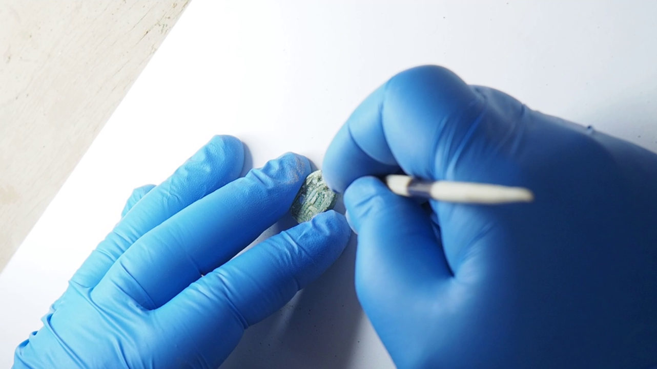 Nach Angaben der Altertumsbehörde stammt das Fundstück aus der Bronzezeit und ist mit einer blau-grünen Glasur überzogen. Demnach war es „ein Symbol für Macht und Status“ und könnte an einer Halskette oder einem Ring getragen worden sein. Die auf dem Skarabäus dargestellte Szene stelle wahrscheinlich die Verleihung der Legitimität an einen lokalen Herrscher dar. (dpa)