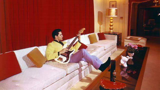 Auf eine Form von Ballast konnte selbst der King fröhlich verzichten: die bildende Kunst. Sowohl in seinem Elternhaus als auch später in Graceland und in seinem Penthouse in Las Vegas dominierte das Kunsthandwerkliche. Waren es bei Vernon und Gladys Presley noch die Blumenstilllebenkalender, gerahmte Blütenreliefs und Steingutfigurinen, zwischen denen Elvis aufwuchs, so sollten es später gläserne Notenschlüssel, weiße Affenfiguren (in allen Größen und Qualitäten) und aufwendigste Bleiverglasungen sein. All das vermischte sich zu einem Gesamtkunstwerk — krasse Farbzusammenstellungen, Unmengen an Stoff, Kristall, Holzvertäfelungen, Antikspiegelverkleidungen, Möbel und plüschigen Fußbodenbelägen, die sich vom Eingangsbereich („Don’t tramp mud in the house!“, ermahnt Elvis seinen Cousin) bis in die Küche zogen. Dazu zählen genauso sein bunter Fuhrpark und die „Lisa Marie“ (nicht die Tochter, sondern der Privatjet).