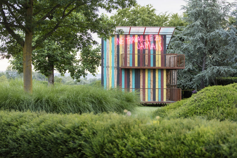 Früher wurde es ebenfalls von den Zisterzienserinnen bewirtschaftet, doch der kleinen Nonnenschar ist es längst zu viel geworden. Die Schwestern haben das fast elf Fußballfelder große Grundstück in Rapperswil-Jona an Enzo Enea verpachtet, und wer den ehemaligen Klostergarten betritt, der wähnt sich in einem Paradies mit uralten Bäumen, dichtgrünen Hecken und einer von bunten Blüten durchsetzten Bienenwiese, aus der es hörbar summt. Ein Stück wohlbehütete Natur, in die der prominenteste Landschaftsarchitekt der Schweiz nun seine Kunst von Rondinone, Sylvie Fleury oder Kerim Seiler stellt.