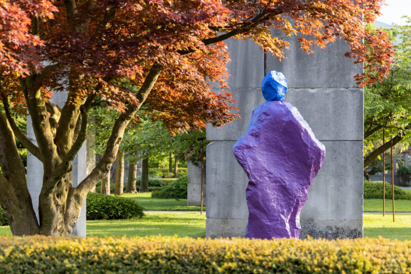 Eine Nonne mit violettem Kleid. Eigentlich sieht sie mehr aus wie ein lila gefärbter, roh behauener Stein, und auch der blaue Kopf verlangt einiges an Fantasie, um jene „Nun“ zu erkennen, die Ugo Rondinone bei der Gestaltung seiner Skulptur vorschwebte. Der Schweizer Künstler hat eine Menge überlebensgroßer Nonnen aus Bronze geschaffen. Ihre Zahl übertrifft in jedem Fall die Mitglieder des Ordens, der schon seit Jahrhunderten am Obersee im Kanton St. Gallen wirkt. Rondinones „Nun“ grüßt vom Areal gegenüber.