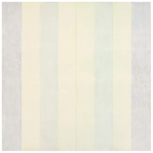 Persönlich haben mich seit jener Reise nach Beacon vor allem Martins spätere Arbeiten angezogen, die in der Zurückgezogenheit von New Mexico entstanden und in denen sie die Raster ihres Frühwerks für ihre ebenso ikonische Formsprache manchmal vertikaler, doch zumeist horizontaler breiter Streifen aufgab. Den großformatigen quadratischen Leinwänden kann man sich nur schlecht entziehen. Ihre changierenden Farben, die mal an das durchscheinende Orangerot der Wüste, das zarte Blau des Himmels, das Blauweiß von Milch oder das verschwindend zarte Gelb eines beginnenden Sonnenaufgangs erinnern, berühren mich immer wieder auf ungeahnte Weise. In jeder psychischen Verfassung, in der ich mich befinde, und mit jedem Abstand, aus dem heraus ich sie sehe, nehmen sie eine andere Qualität an. Sie kommen einem mächtigen Flüstern gleich, das von intensiven psychischen Konflikten und ihrer Auflösung erzählt, vom schwierigen Auf und Ab des Lebens und einer hart erkämpften, doch nachhaltigen Zuversicht. Sie strahlen eine frappierende Verletzlichkeit und eine ebenso frappierende Ruhe aus, die sich auf mich und meinen Körper zu übertragen scheint. Wenn ich mir diese Bilder anschaue, habe ich den Eindruck, etwas über das Leben zu verstehen, das mir vorher nicht bewusst war, fast schon körperlich etwas zu begreifen, dessen Existenz ich zuvor allenfalls geahnt habe. Martins Bilder fühlen sich wie heilsame Wahrnehmungserschütterungen für mich an, die etwas in mir an den richtigen Platz rücken und dafür sorgen, dass sich Stille in mir ausbreitet, wo vorher unterschwelliger Lärm geherrscht hat. Sie wirken wie beinahe spirituelle Ruhepole. Es sind Ekstasen der Stille. Die Essenz des Lichts der Welt.