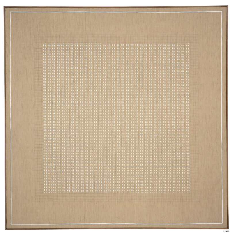 Martin war Ende vierzig, als sie die Formsprache fand, die sie ihr Leben lang weiterentwickelte und die ihr zu großem Erfolg verhalf. Die Bilder, die in jenen Jahren entstanden, kamen in ihrer radikalen Reduktion einem stillen kunsthistorischen Erdbeben gleich. Auf zumeist quadratischen, großformatigen Leinwänden entwarf Martin mit Blei- und Buntstiften, Öl- und später Acrylfarbe Gitter und Raster in verschiedenen Formen, Ausmaßen und Atmosphären. Sie konnten, wie in ihrer Arbeit „White Flower“ von 1960, als dünne weißen Linien auf einem verwaschenen Graubraun in Erscheinung treten, oder, wie in „Friendship“ von 1963, als Striche auf einer See von Blattgold. Diese Raster hatten wenig mit der industriellen Perfektion und Kühle des Minimalismus gemein, weswegen Martin selbst sie zeitlebens dem abstrakten Expressionismus zuordnete. Wenn man sie sich genau anschaut, wird in jedem dieser Bilder die genaue, stundenlange Handarbeit sichtbar, die für ihre Erschaffung nötig war und deren meditative Qualität sich auf die Betrachtenden zu übertragen scheint. Es sind die Spuren des Lebens, die die unerwartete Kraft dieser Werke ausmachen.