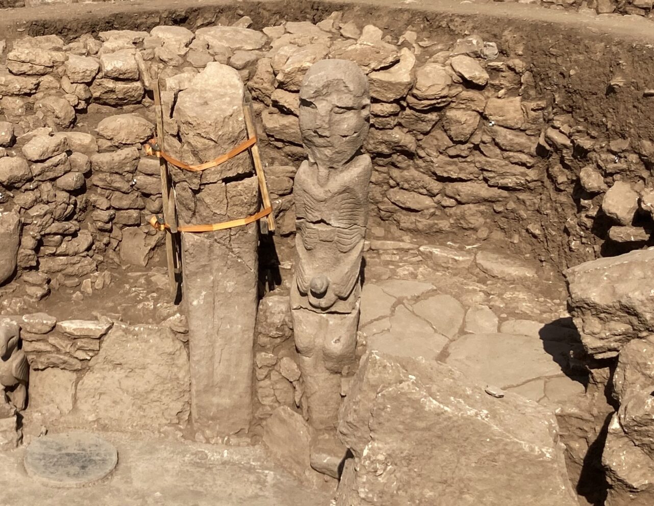 Die gefundene Statue eines Mannes, der auf einer Steinbank sitzt und offenbar seinen Penis mit beiden Händen hält, stammt laut Forschern aus dem Jahr 8500 v. Chr. Die Statue weise auf eine Gesellschaft aus der Jungsteinzeit hin, die noch kultivierter war als bisher angenommen, sagt Karul, Leiter der Abteilung für Prähistorie der Universität Istanbul.