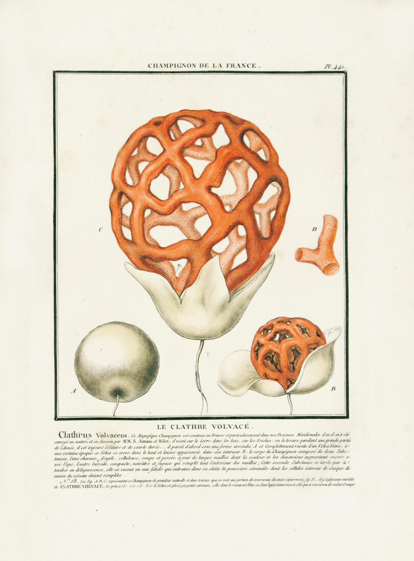 Er schlägt August Cordas großformatige „Pracht-Flora europäischer Schimmelbildungen“ auf. Auf 25 kolorierten Tafeln sind die fantastischen Formen mikroskopisch kleiner Schimmelpilze in all ihrem Erfindungsreichtum dargestellt. Als Corda sein Opus 1839 veröffentlicht habe, sagt Volbracht mit einem trockenen Lachen, sei es „sinnlos verschwenderisch“ genannt worden. Heute sind Pilze als Thema dagegen en vogue, die Naturwissenschaften erforschen ihre Netzwerke, in Architektur und Design wird Myzelium als Material angewandt, Magic Mushrooms haben als bewusstseinserweiternde Droge eine wachsende Fangemeinde, und Pilze tauchen verstärkt in der Gegenwartskunst auf. Volbracht ist den Pilzen schon lange verfallen. „Mein erstes kleines Pilzbuch kam aus dem Regal meines Großvaters. Ich erinnere mich, wie wir Enkel zum Pilzesammeln mit ihm im Harz unterwegs waren. Anschließend begutachtete er unsere Funde.“ Besonders das Bestimmen der Pilze hat ihn schon als Jungen fasziniert. Maronen und auch den Kahlen Krempling haben sie damals gesammelt und gegessen. Dabei hatten sie Glück. Jahre später, als Journalist, verbreitete Volbracht exklusiv die Meldung, dass der Krempling, der lange als Speisepilz verzehrt wurde, auch ein Giftpilz ist, der eine tödliche Wirkung entfalten kann.