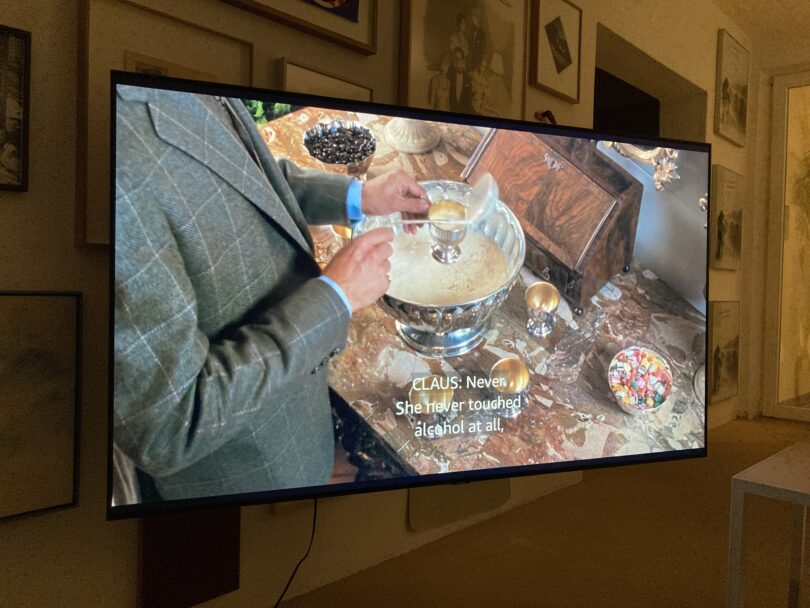 Ziemlich eindeutig ist, dass Claus von Bülow kein Santa war. Ob er aber versucht hat, seine steinreiche Frau Sunny umzubringen, darüber scheiden sich bis heute die drei Geister der Weihnacht. Und der Film selbst, dessen erstes „Reversal of Fortune“ (so der Originaltitel) an Weihnachten passiert: Kurz bevor Sunny (Glenn Close) in ein Koma fällt, aus dem sie nie wieder aufwachen wird, verlangt sie von ihrem Mann Claus (Jeremy Irons) mehr Eierlikör. Wie das auszusehen hat bei den Bülows, zeigt eine längere Kameraeinstellung. Silberne Punschschale, silberne Punschtassen, silberne Punschkelle, Kaffeebohnen und „Candy“. Sunny von Bülow liebte Weihnachten über alles und Süßigkeiten noch mehr – im Film sowie im wahren Leben. Ansonsten beschränkt sich der Weihnachtsschmuck auf Clarendon Court in Newport, Rhode Island, auf rote Blumen hier und da (Weihnachststerne, Gladiolen) und den enormen Weihnachtsbaum mit bunten Lichtern in der steinernen Eingangshalle des Anwesens. Ein eigentümlicher Ort für das Zentrum der Festtage, aber passend zur unterkühlten Atmosphäre in dieser Familie. Die bunten Lichter im Baum scheinen so ein „Ding“ zu sein in der amerikanischen Oberschicht (siehe auch „Eyes Wide Shut“ und „Kevin allein zu Haus“). Der Eierlikör also. Den trinkt Sunny noch (zu viel davon) und spricht (noch) aufrecht sitzend einen ihrer letzten Sätze: „I’m thinking of redecorating this whole fucking house!“