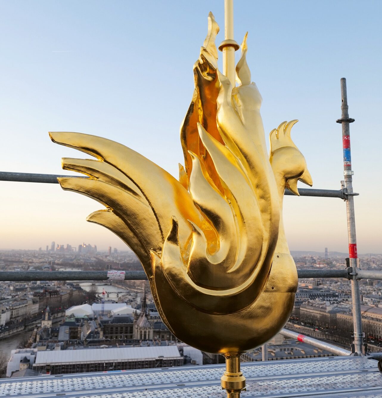 Paris, 15. Mai 2024: Es hämmert, es sägt, es bohrt hinter den Bauzäunen auf der Île de la Cité. In der Mitte erhebt sich aus einem Gerüstwald die Kathedrale von Notre-Dame in den Frühlingshimmel. Nur fünf Jahre nach dem verheerenden Brand, der dieses 861 Jahre alte Meisterwerk der Gotik schwer beschädigte, ist die vertraute Silhouette wiederhergestellt. Stolz ragt der 96 Meter hohe Vierungsturm empor, vom Architekten Eugène Viollet-le-Duc 1859 wiedererrichtet. Auf seiner Spitze thront wie ehedem der goldene Hahn. Noch ist die Erinnerung an die Entsetzensschreie lebendig, als die flèche im flammenden Mittelschiff versank. Damals wurde der Hahn später auf einer Grünfläche neben der Kathedrale gefunden. Das gallische Wahrzeichen überlebte den Brand – Präsident Emmanuel Macron, 2019 wegen seiner als antisozial und antisolidarisch empfundenen Reformpolitik unter Druck, nutzte den patriotischen Elan: Notre-Dame werde innerhalb von fünf Jahren wiederaufgebaut, dekretierte er kurz nach dem Brand.