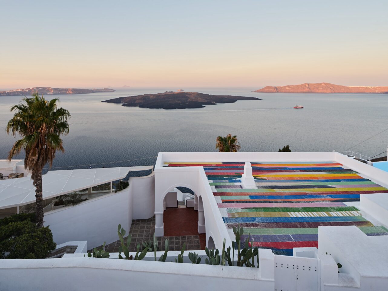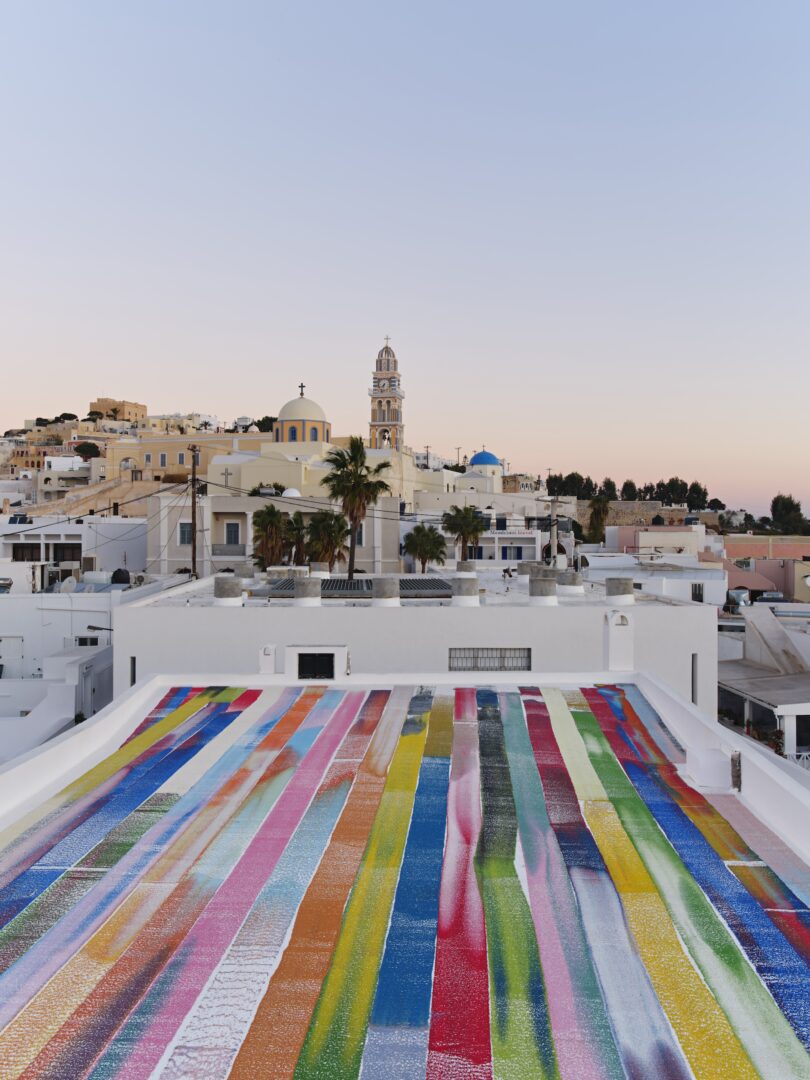Auf einem steilen Felsen in Thira thront dieser Art-Space, der sich besonders auf Performance und Sound konzentriert und ein Magnet für internationale Kreative wie Raphael Hefti ist, der die gestreifte Dacharbeit schuf. Das Gebäude mit seiner atemberaubenden Aussicht entstand in den Fifties, manche der Räume sind direkt in das Gestein gehöhlt. Gary’s Bar serviert Drinks mit so verführerischen Namen wie „Dirty Bikini“ oder „Satisfying Pork“.