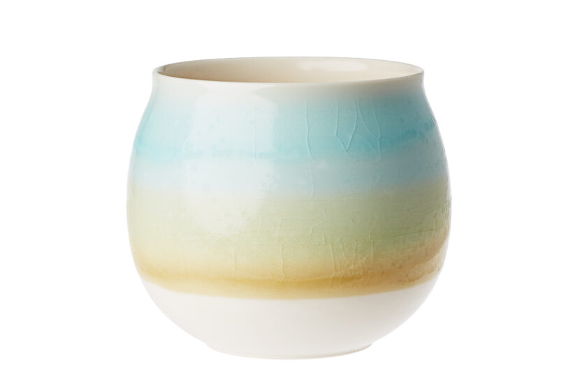 Inspiriert von Helen Frankenthalers revolutionärem Malstil entstand der Farbverlauf dieser Porzellanbecher. In Handarbeit werden die Unikate in dem ältesten Porzellanproduktionszentrum Japans, der kleinen Stadt Arita, hergestellt. Die leuchtenden Becher können für 40 Euro im Museumsshop des Museum Reinhard Ernst in Wiesbaden, das Helen Frankenthaler im Frühling 2025 eine große Ausstellung widmen wird, erworben werden.