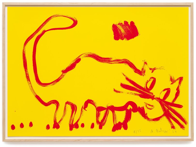 Der Verlag Handsiebdruckerei Editionen betreibt eine eigene Werkstatt in Berlin-Kreuzberg. Dort werden ausgewählte, nachhaltige Druckgrafiken produziert. Die Katze ist ein wiederkehrendes Motiv im Werk des deutschen Künstlers André Butzer und lässt die Herzen nicht nur von Katzenliebhabern höherschlagen. Die signierte Edition misst 70 mal 50 Zentimeter und kann auf der Website der Handsiebdruckerei erworben werden.