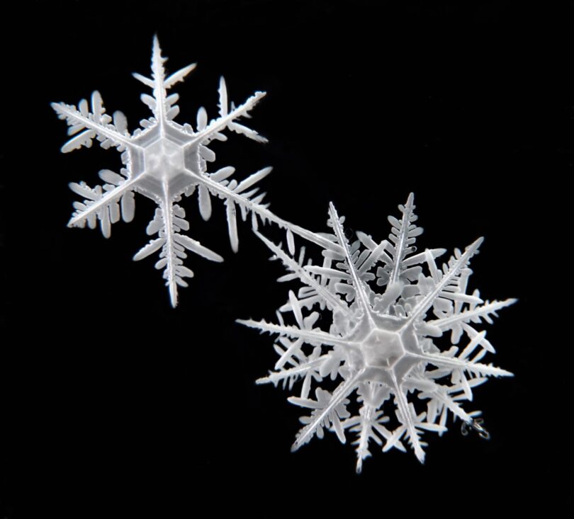 Als Thomas Hoffmann bei der Mosaic-Expedition mit dem Forschungsschiff „Polarstern“ monatelang angedockt an eine Eisscholle durch das Nordpolarmeer driftete, kamen zur Sammlung noch Kristalle aus der Arktis dazu. Auch Flocken aus den österreichischen Alpen sind dabei. Damit auch andere Menschen die Kollektion zu Gesicht bekommen, hat das Paar von den einzelnen Flocken mit Makro-Objektiven Fotos gemacht. Sie sind auf der Homepage zu ihrem Projekt „Cryosity“ zu sehen. Auch Poster haben sie von den Bildern schon für eine Konferenz angefertigt. „Unten hatten wir die Originalflocke befestigt“, erzählt Helene Hoffmann. Der Größenunterschied war frappierend. „Das kam bei den Betrachtern gut an.“ (dpa)