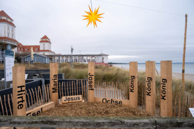 Bemalte Figuren, die das Jesuskind, die Heiligen Drei Könige und die Tiere mit vielen Details darstellen – so kennt man Weihnachtskrippen. Ein Werk am Ostseestrand hat einen ganz anderen Ansatz