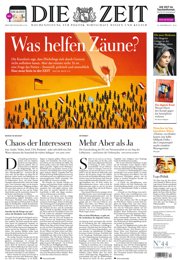 Das ZEITmagazin ist der emotionale, lebendige Teil der ZEIT. Spannende Reportagen, außergewöhnliche Portraits, exklusive Interviews und geschliffene Kolumnen machen das ZEITmagazin so unverwechselbar. Chefredakteur ist Christoph Amend, Herausgeber des Kunstmagazins WELTKUNST. Regelmäßige Kolumnen wie „Pariser Tagebuch“ von Jean Philippe Delhomme und große Titelgeschichten, wie über Marlene Dumas, machen das Thema KUNST zum zentralen Bestandteil des ZEITmagazins.