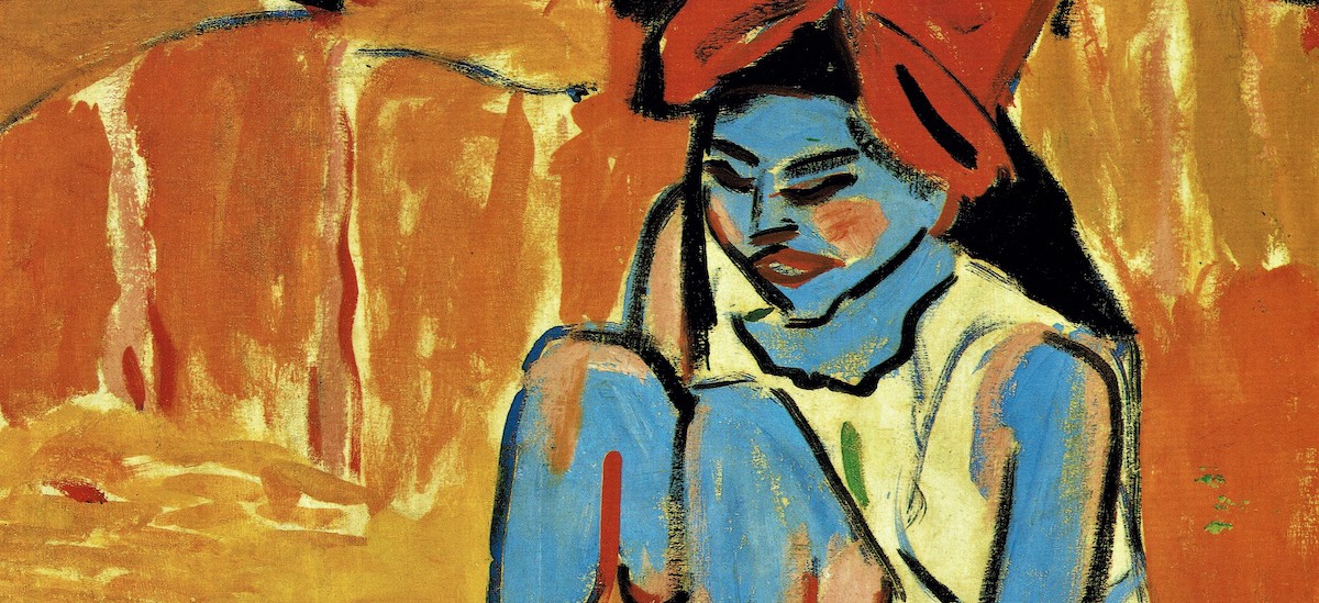 Schon 1909 schuf Erich Heckel, ebenfalls an den Moritzburger Teichen, das hinreißende Aquarell „Fränzi mit Decke“. Eines der Glanzlichter der Sammlung Gerlinger. 1910 entstand ein Interieur, in dem Fränzi zusammen mit dem Nachbarjungen Hans zu sehen ist. Hier lässt sich anhand einer Bleistiftzeichnung desselben Themas, die auch zum Bestand der Sammlung Gerlinger gehört, die Arbeitsweise Heckels nachvollziehen. Dass beide Werke in die Sammlung zusammenfanden: Ein Glücksfall; geschuldet der Aufmerksamkeit und der Strategie des klugen Sammlers. Das Gemälde „Lesende“ von Karl Schmidt-Rottluff überrascht mit seiner kubistisch-facettierten Flächengestaltung. Sie kommt aus seinen Holzschnitten und ist ein Stilmittel, das die für den Maler typische „Flächenwucht“ artikuliert.
