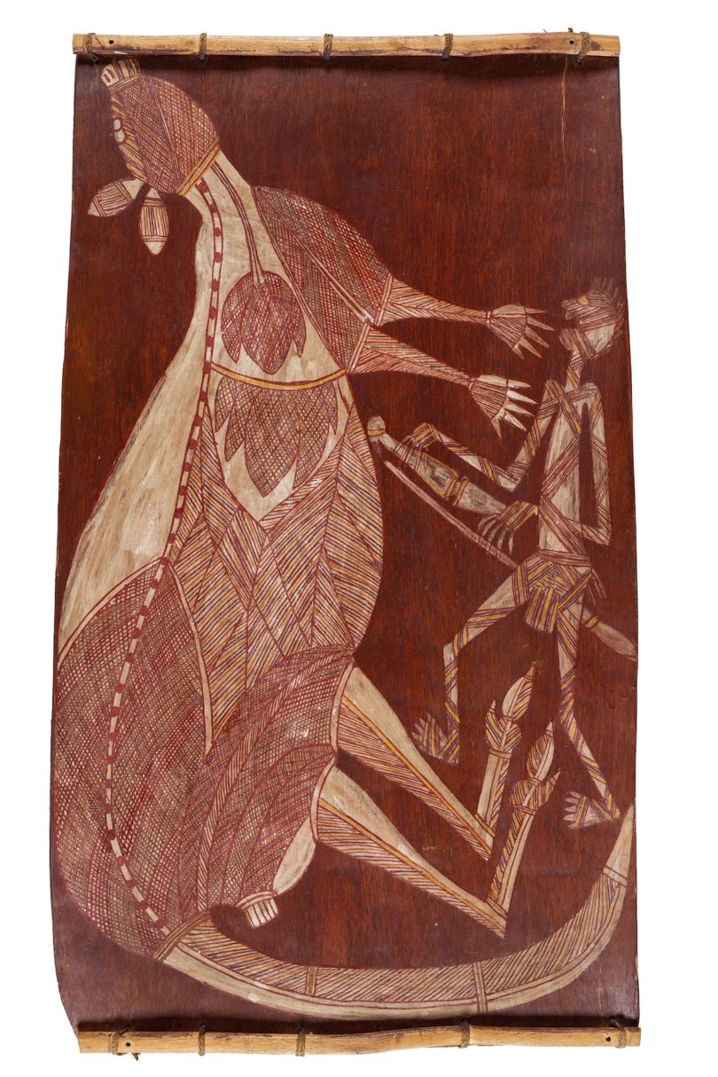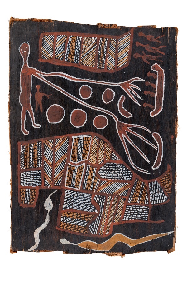Neben Felsenmalereien und der zeremoniellen Körperbemalung nimmt die Rindenmalerei bei den Aborigines einen bedeutenden Raum ein. Viele Rindenbilder sind für die Eingeweihten als tiefgründige spirituelle Landkarten zu lesen. Die Rinden stammen vom Eukalyptusbaum. Trotz der Schälung wachsen die Eukalyptusbäume weiter und bilden neue Rindenschichten. Nach dem Schälen mit Feuer geglättet, gereinigt und aufwendig behandelt, dienen sie als Malgrund. Damit sind für die Bilder, die sowohl innen als auch außen auf die Rinden aufgetragen werden können, begrenzte Formate vorgegeben. Die Rindenmalerei wird mit Erdfarben ausgeführt. Das führt – unabhängig vom noch so exaltiert gemalten Sujet – zu farblicher Harmonie in gedeckten Braun-Weiß-Ocker-Rot- und Schwarztönen. Als früheste, von Europäern gesammelte Rindenbilder gelten jene aus den 1870er-Jahren, die aus verlassenen Schutzhütten geborgen wurden und im Museum in Sydney seit den 1910er-Jahren von Baldwin Spencer erforscht wurden. Spencer gab bis in die 1920er Jahre Rindenbilder für das Nationalmuseum of Victoria in Melburne in Auftrag. So entstand ein Markt für die Rindenmalerei, die ab den 1930ern in Arnhemland von der Mission gefördert wurde.