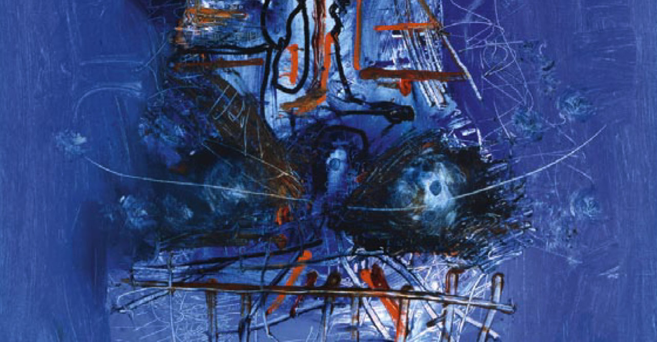 Eigentlich ein so schönes Blau, ein Blau, wie man sich das Meer vorstellt, das nur nie so aussieht. Ein Ultramarin, tief, komplex und bewegt. Man geriete fast ins Schwärmen, wären da nicht die ruhelose Grattage und die Fingerspuren, die zum Angriff auf den malerischen Raum blasen, die blutroten Schlieren, die buchstäblich einen Strich durch jedes oberflächliche Wohlgefühl machen, und das brachial pulsierende Schwarz, von dem man irgendwann den Blick nicht wenden kann. Ein Absturz in eine düstere Welt ausradierter Sicherheit. Ein Wegbruch des Lebens. Und dennoch Hoffnung und dieses eigentlich so schöne Blau.