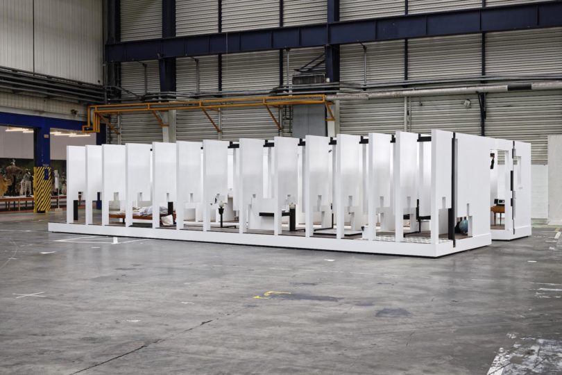 Dabei empfiehlt es sich, zunächst den umfangreichsten Standort, die ehemaligen Fagor Fabrikhallen im Südosten der Stadt aufzusuchen. In den mehr als 15 Meter hohen Hallen, in denen einst Waschmaschinen und später Autos produziert wurde, werden nun auf 29.000 Quadratmetern zahlreiche beeindruckende Rauminstallationen präsentiert, die eigens für die Biennale entstanden sind: Der kolumbianische Künstler Pedro Gómez-Egana lädt uns mit seiner Arbeit „Virgodazu ein, ein scheinbar leer stehendes Wohnhaus zu betreten, das offenbar erst vor kurzem fluchtartig verlassen wurde. Kleine Hinweise, wie ein mehrfach auftauchendes Glas gefüllt mit Schere und Kugelschreibern und die immer gleiche Wanduhr deuten darauf hin, dass es sich um ein Heim oder Hotel handeln könnte, gleichzeitig aber versprüht jede der schmalen Parzellen eine große Individualität. In einem der Zimmerchen erklingt aus einem offen stehenden Laptop der traurige Klang einer Geige, während auf dem Bildschirm ein Tagebucheintrag von Geisterhand geschrieben wird: We remembered our living days wrong.