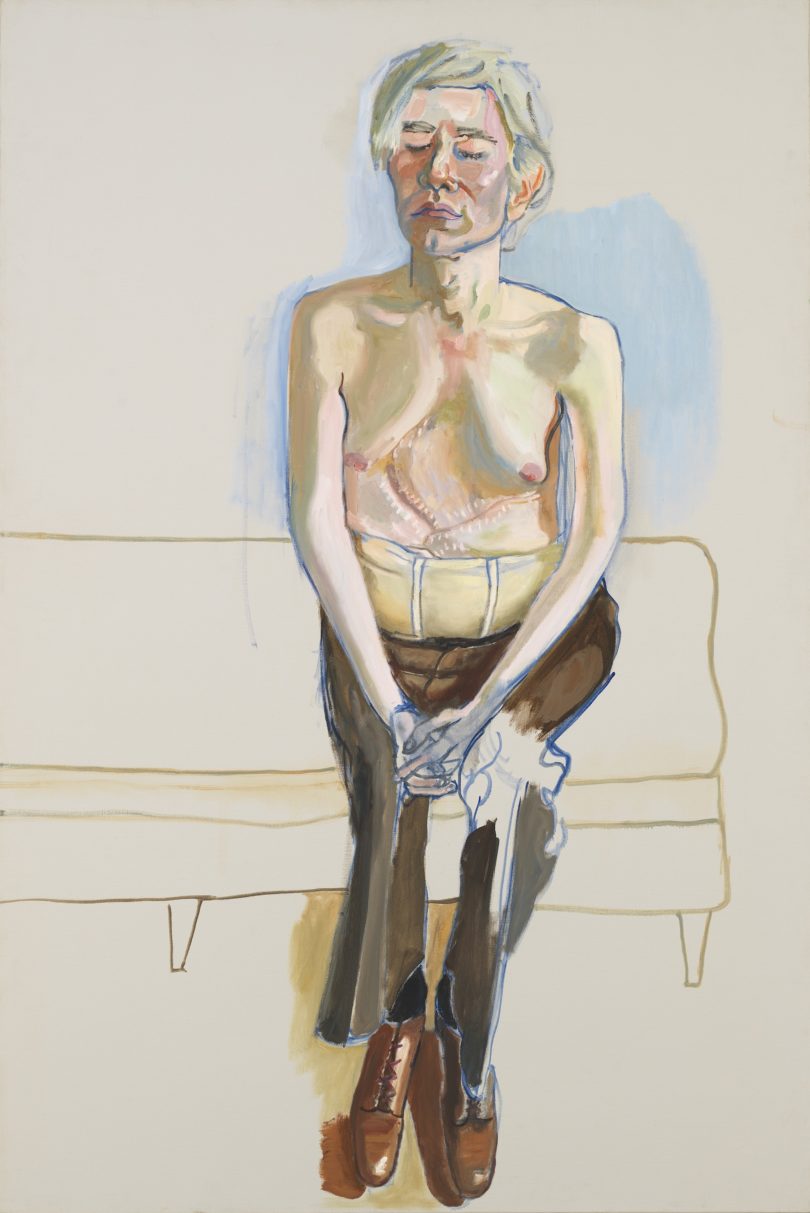 Nachdem ihre Söhne erwachsen waren, brach für Neel ein neuer Karriereabschnitt an: Allein ihrer Malerei verpflichtet, mischte sie sich unter die hippe Künstlerszene der Zeit. Sie machte Bekanntschaft mit den Beatniks und später mit Andy Warhol, den sie 1970 auf dem Höhepunkt seiner Karriere porträtierte. Ein Jahr zuvor hatte der Stonewall-Aufstand einen Meilenstein im Kampf der LGBTQ-Bewegung für Gleichberechtigung markiert. Zwei Jahre zuvor wäre Warhol bei einem Attentat beinahe ums Leben gekommen. Beide Ereignisse haben sich, wie Neels Porträt suggeriert, in Warhols Haut eingeschrieben. Neel zeigt den Künstler ohne Schutzpanzer: Mit geschlossenen Augen und entblößtem Oberkörper sitzt er auf der Kante einer Chaiselongue. Auf seinem Bauch zeichnen sich die Narben ab, die der Mordanschlag hinterlassen hat. Warhol, der gefeierte, queere Pop-Art-Gott, wird unter Neels Blick zum zerbrechlichen Memento Mori.
