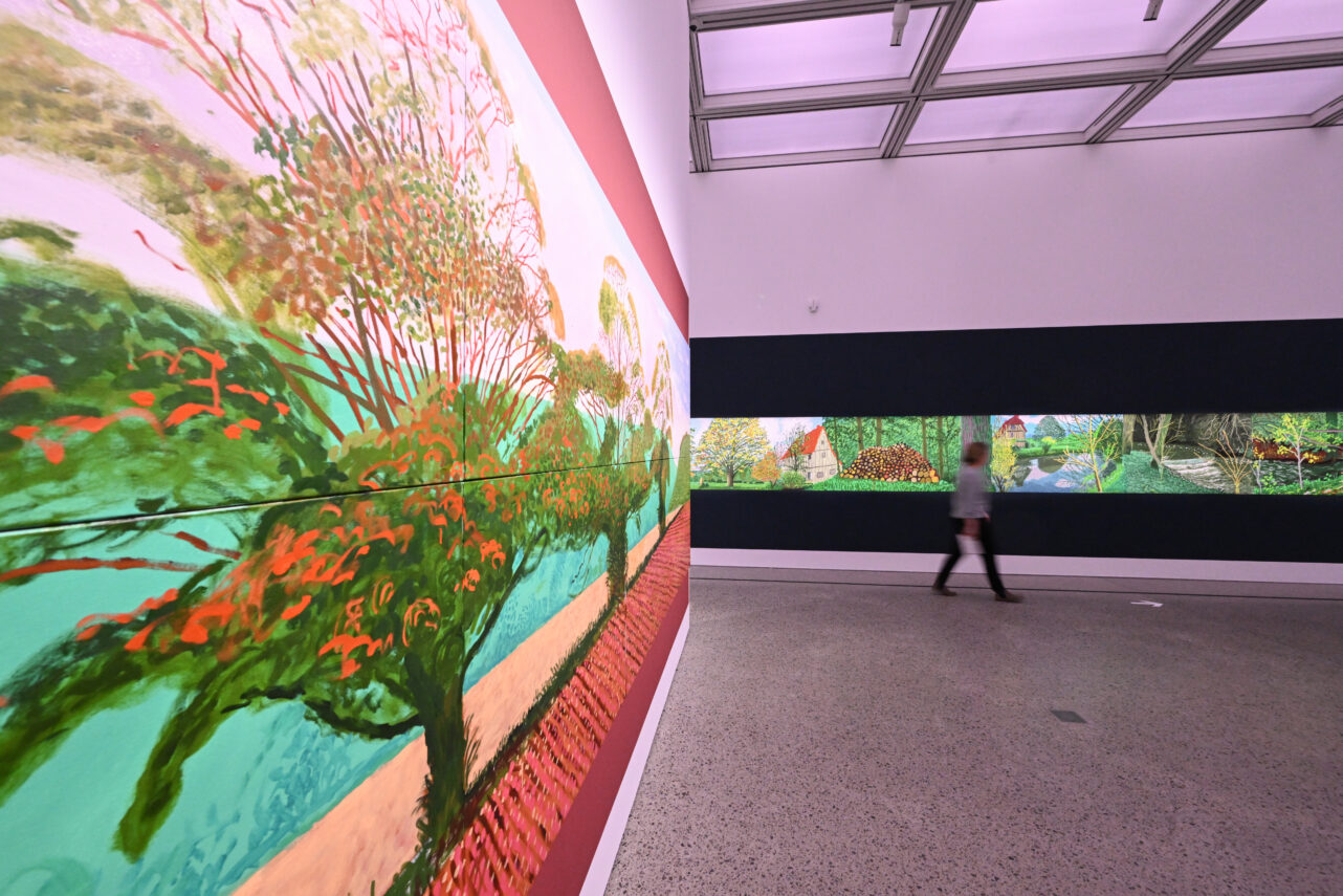 Sein Werk „A Year in Normandy“ ist vom 3. April bis 16. Juli 2023 im Museum Würth 2 in Künzelsau im Nordosten Baden-Württembergs zu sehen. Dazu zeigt das Haus weitere Kunstwerke Hockneys aus dem Bestand der Sammlung Würth. (dpa)