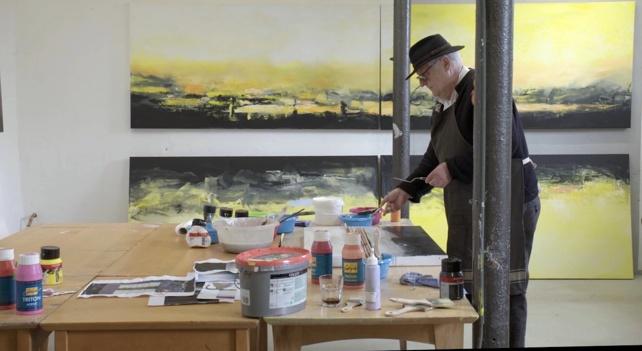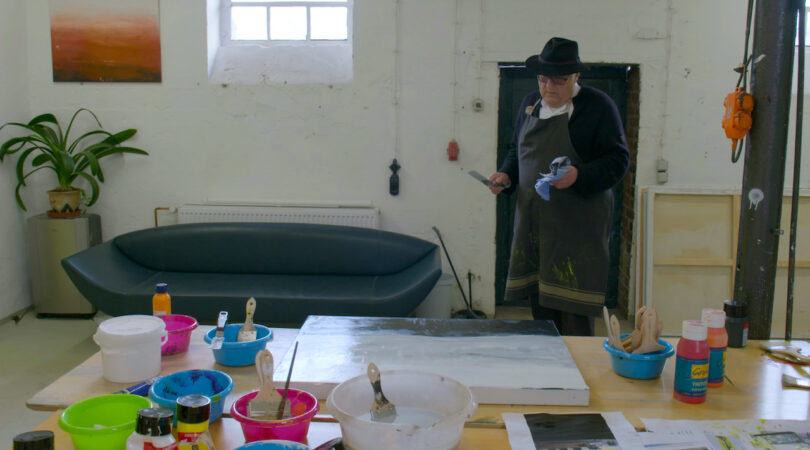 Wie tief Achenbach gefallen ist, dass er von ehemaligen Freunden und Kollegen auf einmal geächtet wurde, sein Vermögen und seine Ehe verlor, davon erzählen nicht nur die vielen sehr intimen Interviews, sondern auch die teils grotesken Bilder, die Birgit Schulz nach seiner Freilassung einfangen konnte: Unter dem Titel „Back in Black“ veranstaltet Achenbach eine Vernissage, auf der nun seine eigenen Gemälde angeboten werden, bei deren Entstehung wir ihn zuvor in Schürze und mit Hut beobachten dürfen – und die er selbst in der Tradition von Caspar David Friedrich und Ferdinand Hodler einordnet.