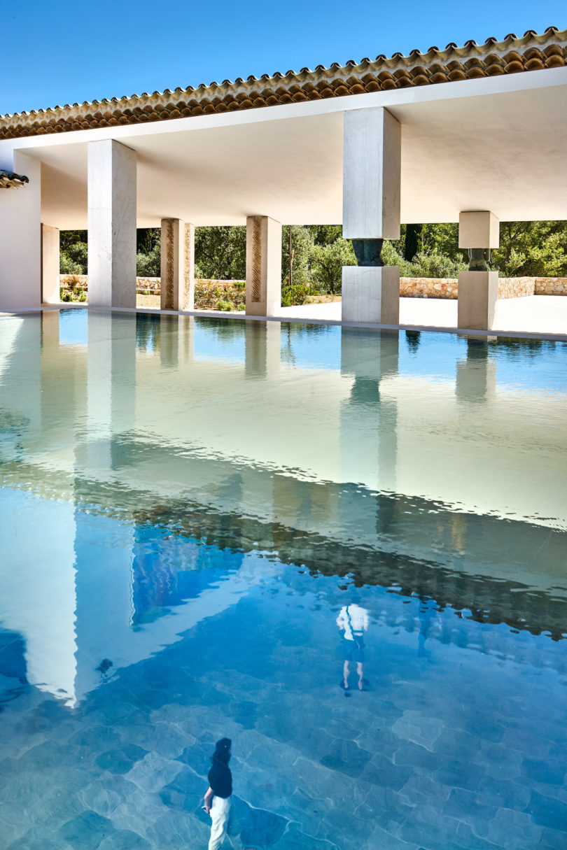 Zur Fondation Carmignac geht es also zu Fuß – auf einem der typischen Sandwege, unter Kiefern und Schirmpinien, bis man vor einem großen Metalltor steht, das am Tag ins Gebüsch zurückgezogen wird. Wer seine Tasche im Garderobenschrank einschließen möchte, findet ihn versteckt in einem Hain junger Steineichen. Auf dem Hauptweg serviert Charles Carmignac, seit 2018 Museumsdirektor, einen Becher geheimnisvollen Kräutersud, um die „Aufnahmefähigkeit des Besuchers zu unterstützen“. In wenigen Minuten wird er mich noch bitten, im Museum die Schuhe und Socken auszuziehen, um die Energie des Steinbodens besser zu spüren. Doch für den Moment setzt sich Carmignac auf eine Mauer in die Abendsonne. Seine braunen Augen blinzeln unter dem dunklen Lockenschopf. „Unser Projekt ist komplett in die Landschaft integriert“, sagt er und lässt den Blick zur Villa auf dem kleinen Hügel wandern. In diesem steckt – gut verborgen – die Kunst.